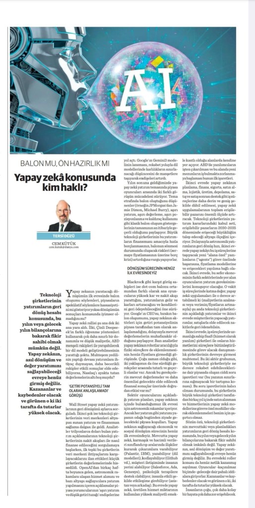 - Translation of my article in Dunya Gazetesi (leading Turkish economy newspaper) on 20th of December.